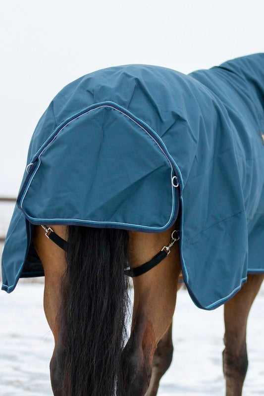 Kestävästä 1200D ripstop polyesteristä valmistettu ulkoloimi kunnon sadekelille. Loimessa on kiinteä kaulaosa ja 50g vanu. Kaikki saumat ovat teipatut ja hämäränäkyvyyttä parantamaan koko loimea kiertää heijastava tere. Mukavuutta ja liikkumatilaa tuovat korkeat lapalaskokset, joustot ristivöissä sekä joustavat jalkalenkit. Loimessa on reilu mitoitus.